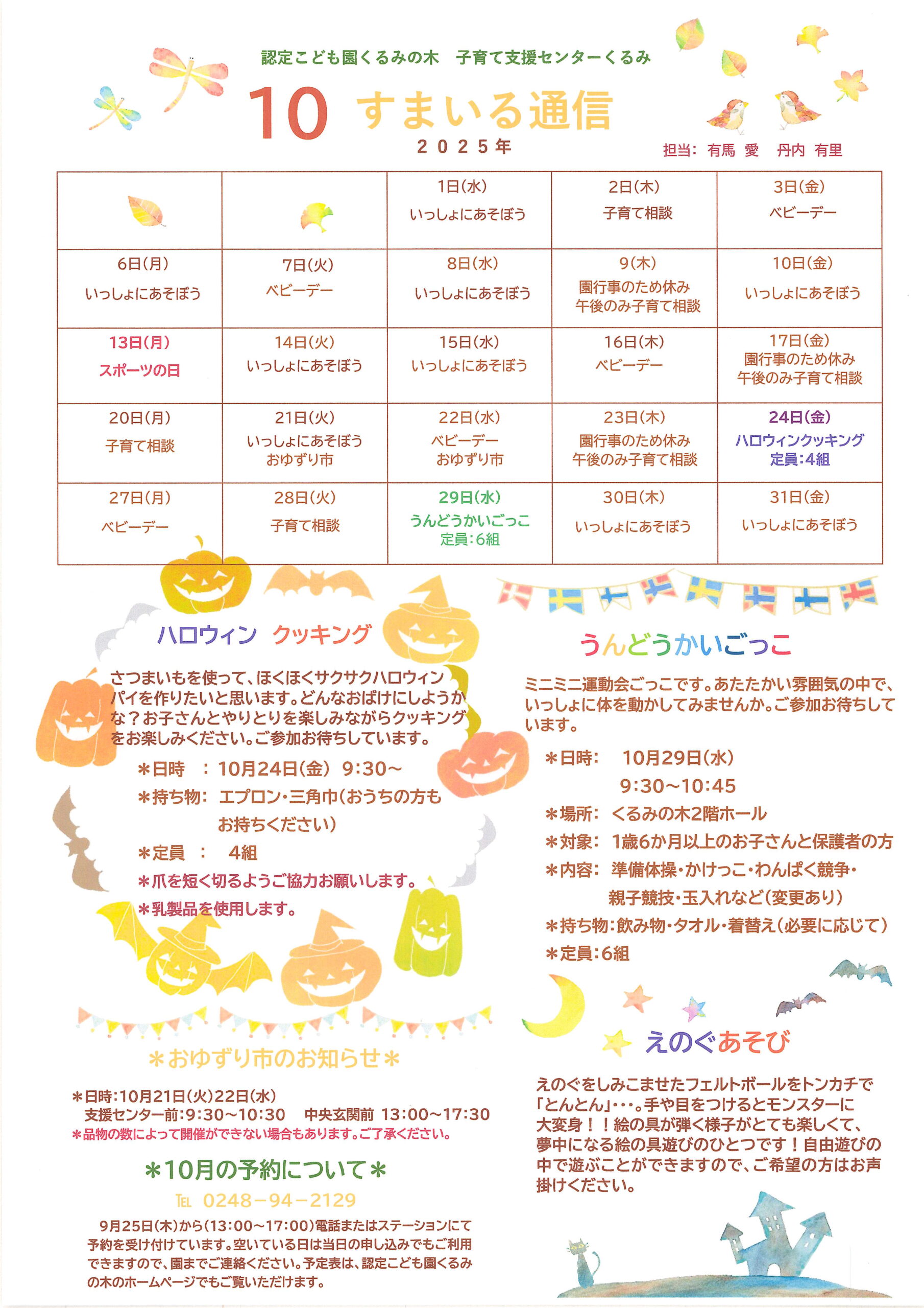 子育て支援センター「くるみ」は、子育て中のお父さんお母さん、子育てを応援してくださっているおじいちゃんおばあちゃんが、お子さんやお孫さんと一緒にあたたかい雰囲気の中でゆったりと過ごせるような場所でありたいと思っています。