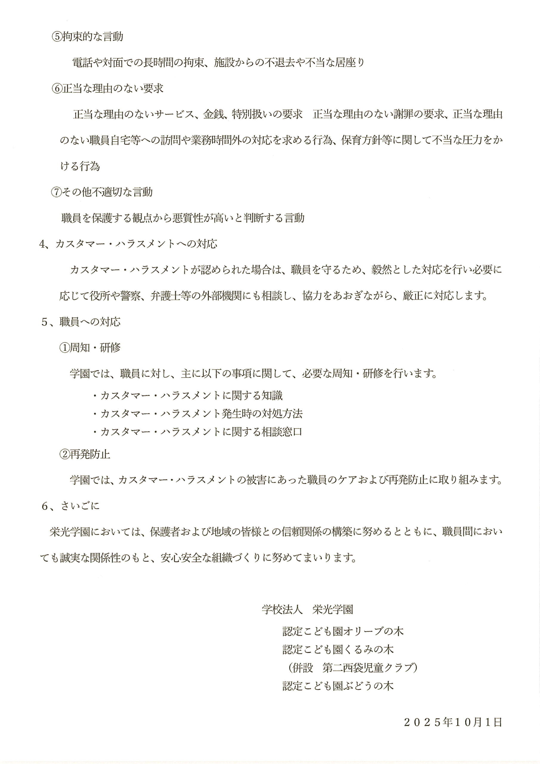学校法人栄光学園 カスタマー・ハラスメントへの対応に関する基本方針